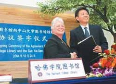 第二项续推努力。2000年6月20日——被捕前三天,笔者带上《中山大学政治学、法律学、军事学中文图书目录(1957年以前。藏于总馆)》油印本一册,应邀前往广州沙面美国驻广州总领事馆赴私人宴。席间,笔者赠送那油印本予总领事,并且自称代表中山大学(其时本人是中大历史系客座副教授)向他提出要求:“美国国务院文化司可否蒐集一批1949年以后出版的社科类、人文类英文著作,捐赠给悉心保护这3812册旧时出版的政治学、法律学、军事学著作的中山大学——一半前为美国岭南基金会创办的岭南大学——图书馆?”对方一听,来了精神,马上唤来一位女性馆员做一笔录,当即郑重承诺将笔者要求转呈国务院。2002年初,笔者在看守所里听到《新闻联播》报道:美国哈佛大学赠送15万册社科、人文英文图书予中山大学图书馆。总领事守信,梦想成真了!中山大学总图书馆将它们置于大学城中大东校园图书馆,命名为“喜乐斯专藏”(喜乐斯既是原图书馆馆名,也是“知之乐在于斯”的意思),向公众开放坐阅、借阅。笔者曾在哈佛游学待过一秋一冬,知道它的图书馆藏书通常每种书均有三四册复本,所以这15万册书应该不会是孤本,捐出之后哈佛自己就没了。