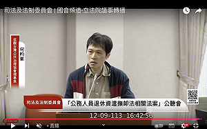 對於國民黨立委提案要終止逐年遞減退休所得率,支持年改的前年輕公務員何昀峯今(9)日在立院公聽會強力批評反對年改的人表示,十年前開啟改革作業,「你們會憤慨,拿走了好像原來屬於你們的東西,而且拿的還是錢」。「各位你可能跟我爸媽一樣做阿公阿嬤,借問一下,阿公阿嬤,這條錢是咱跟咱的國家做伙賺的,你們拿走,...