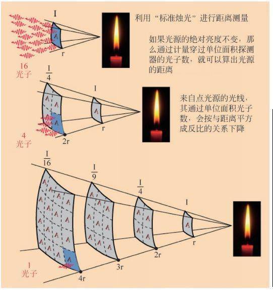 你可能会觉得有些不知所云了:“为什么如此简单的定律能开创一个全新的学科呢?”答案是,它提供了一种全新的距离测量的方法,那就是著名的标准烛光。